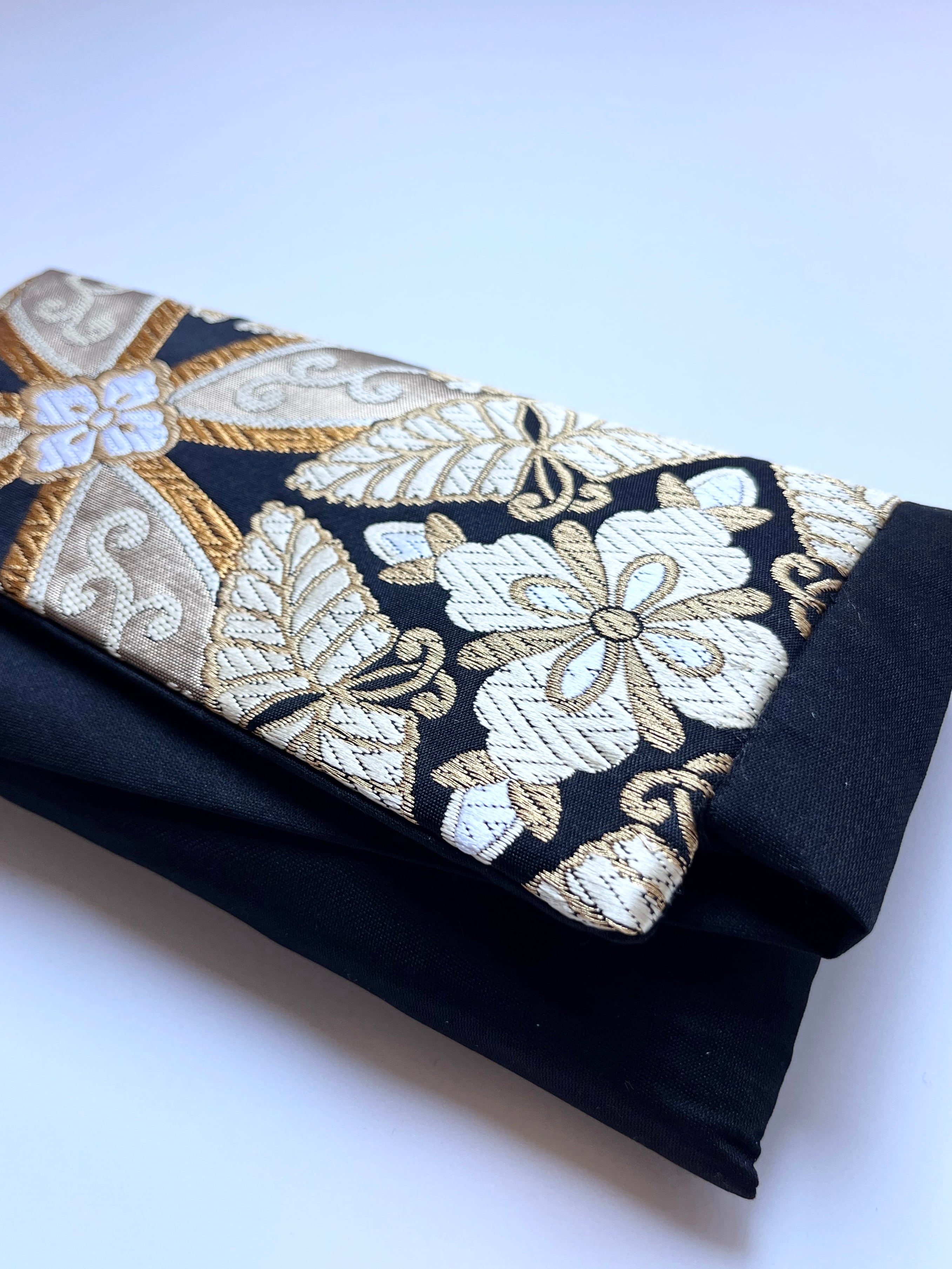 数寄屋袋(すきやぶくろ) 正絹帯地 黒・白